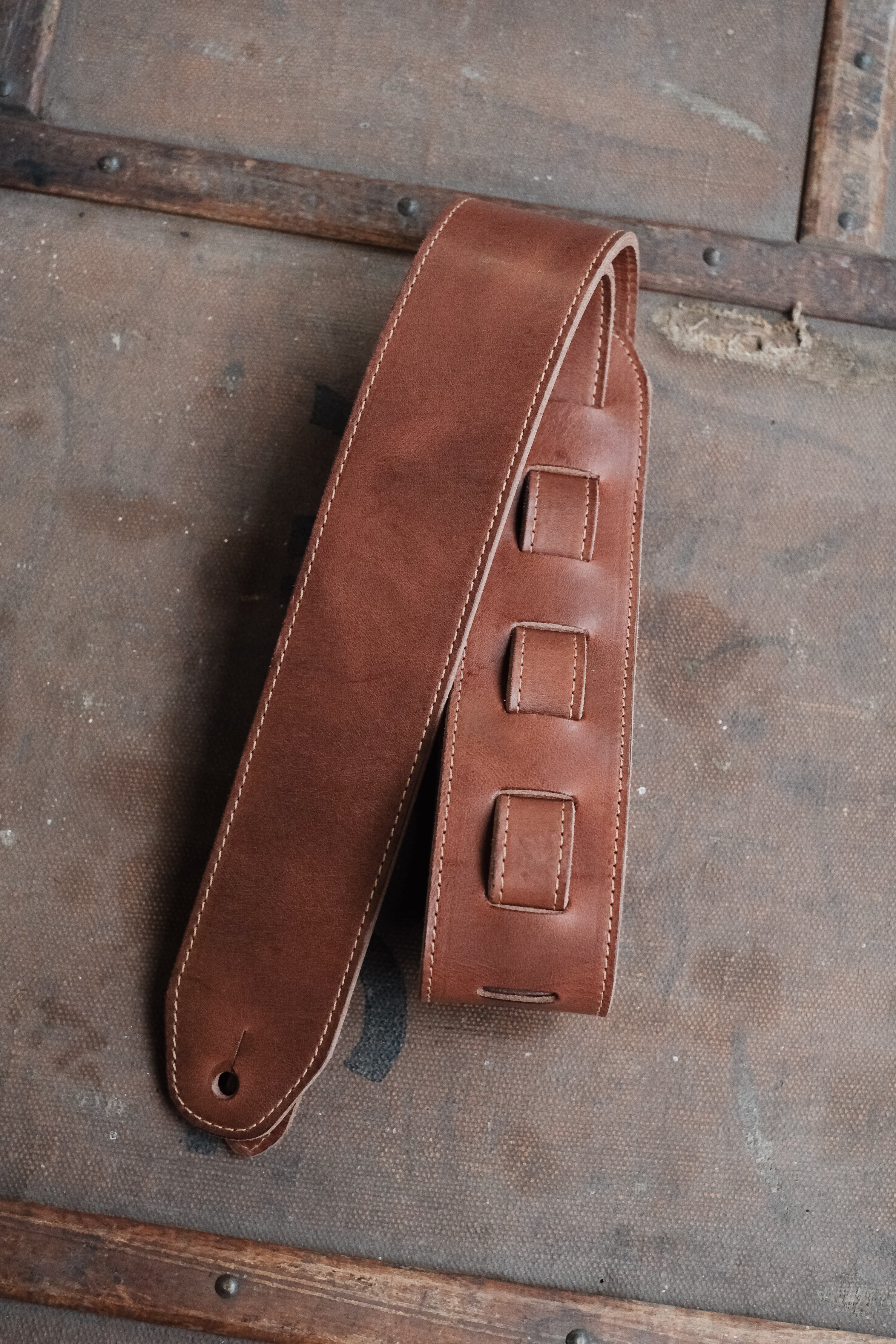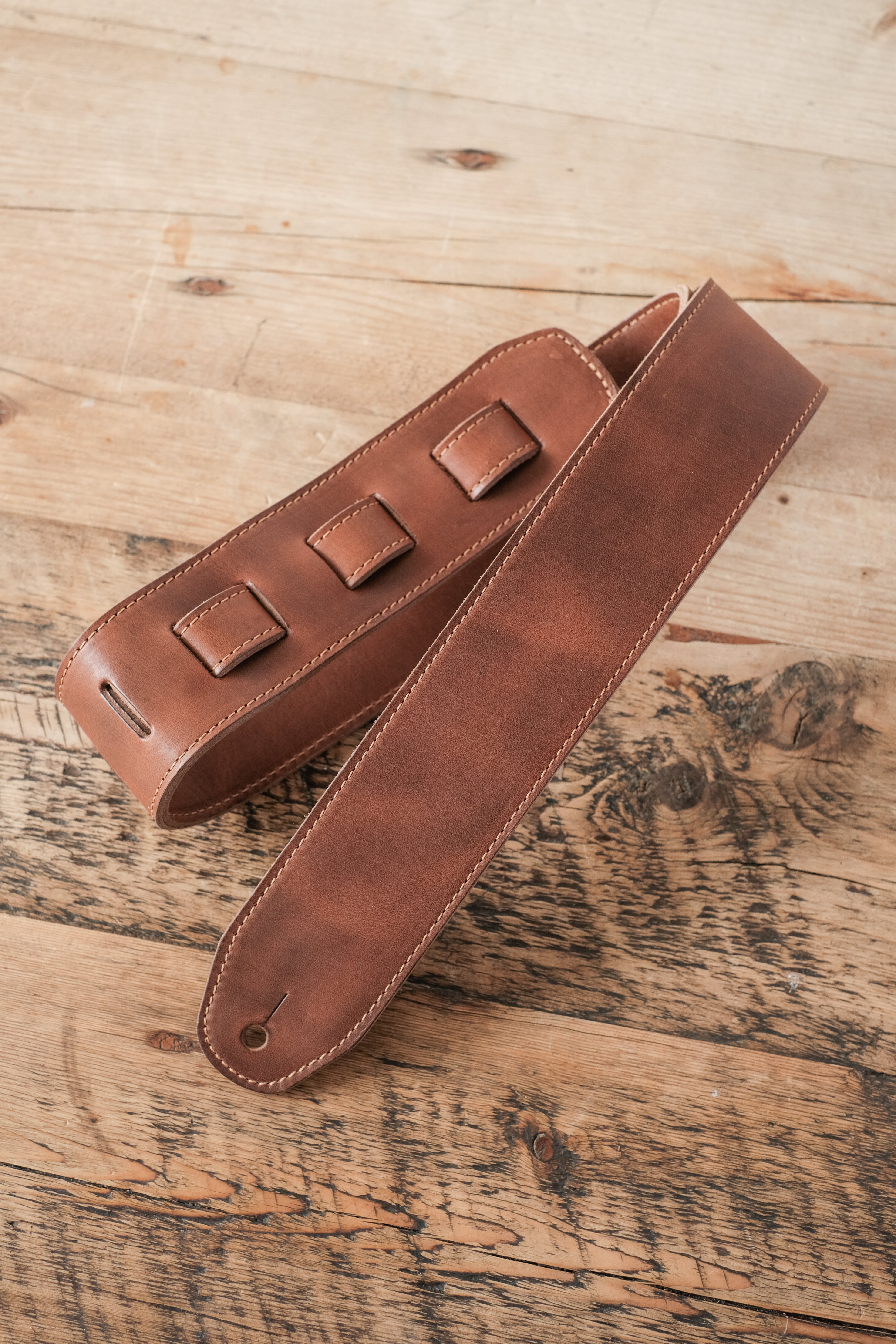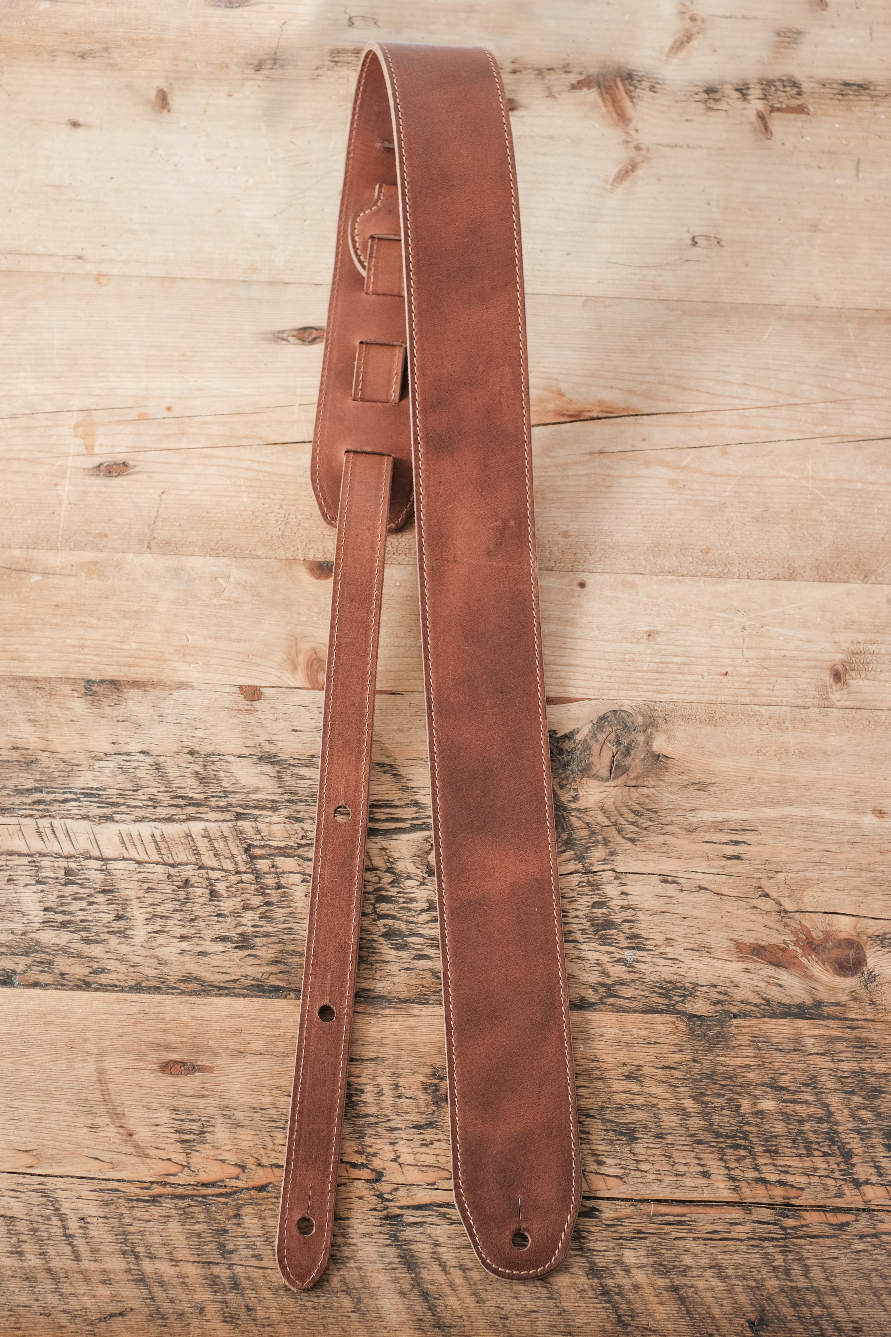 bought for the fussiest 60s Beat fan who loaths the modern guitar strap. This strap is perfect. Really high-quality leather beautifully and elegantly designed and made my partner smile. The strap will get many years of use. Thank you very much.