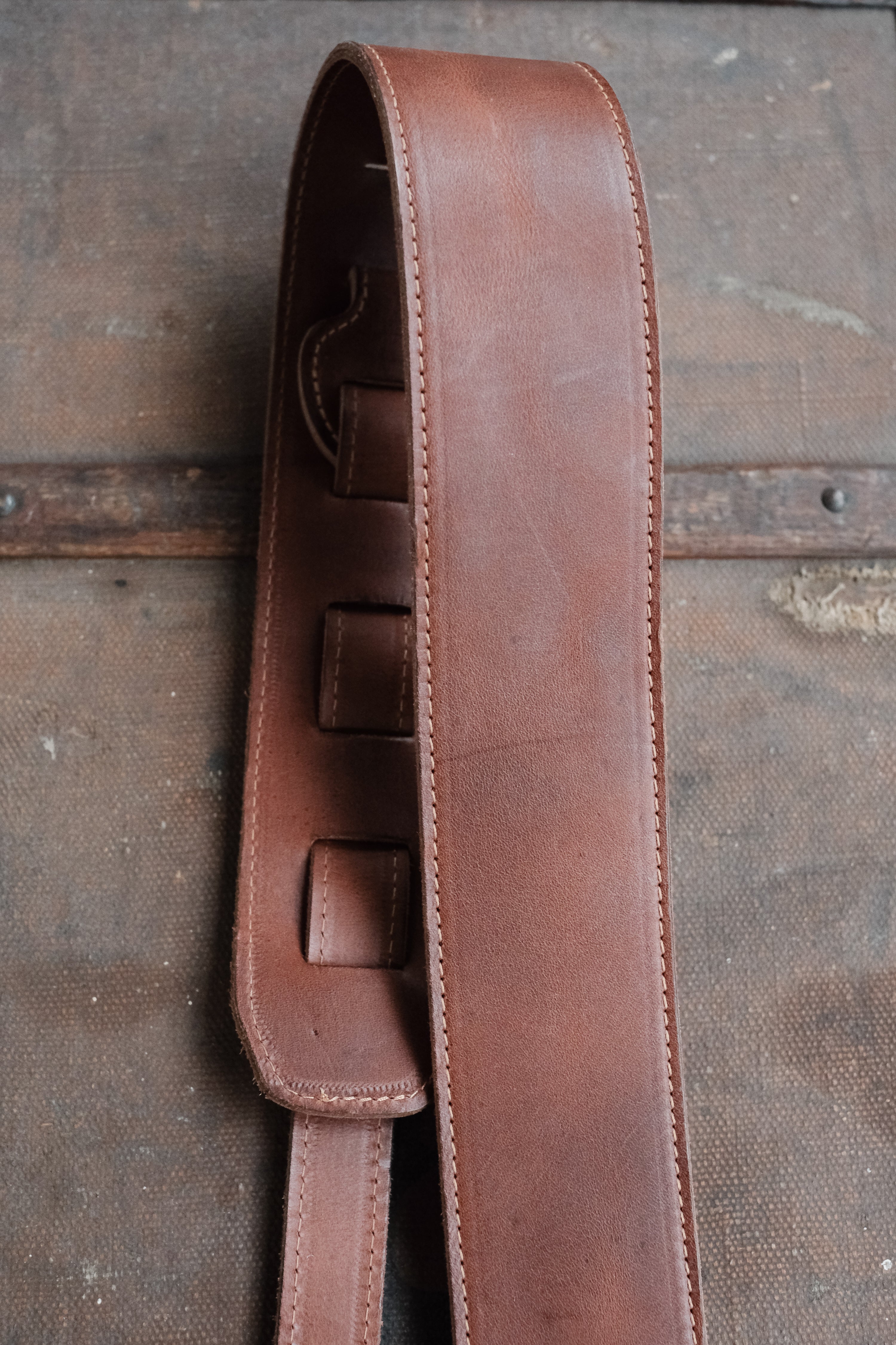 Its lovely! Excellent adjustability. Good support for my Tanglewood TW4 Winterleaf electro acoustic and out of the way when you don’t want excess leather flapping about. I’m looking forward to seeing it wear in and age, I know it will look and feel great. Thank you.
