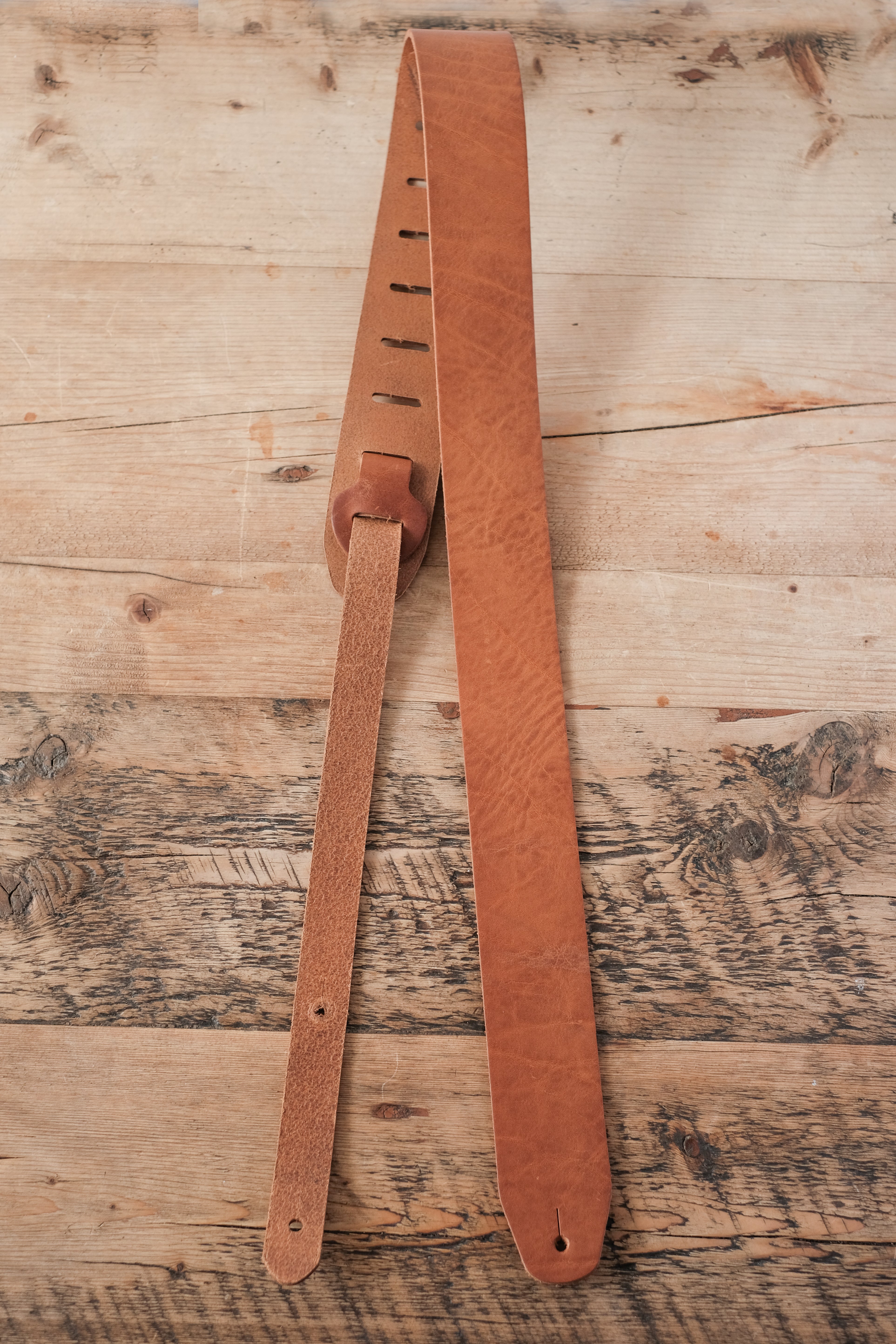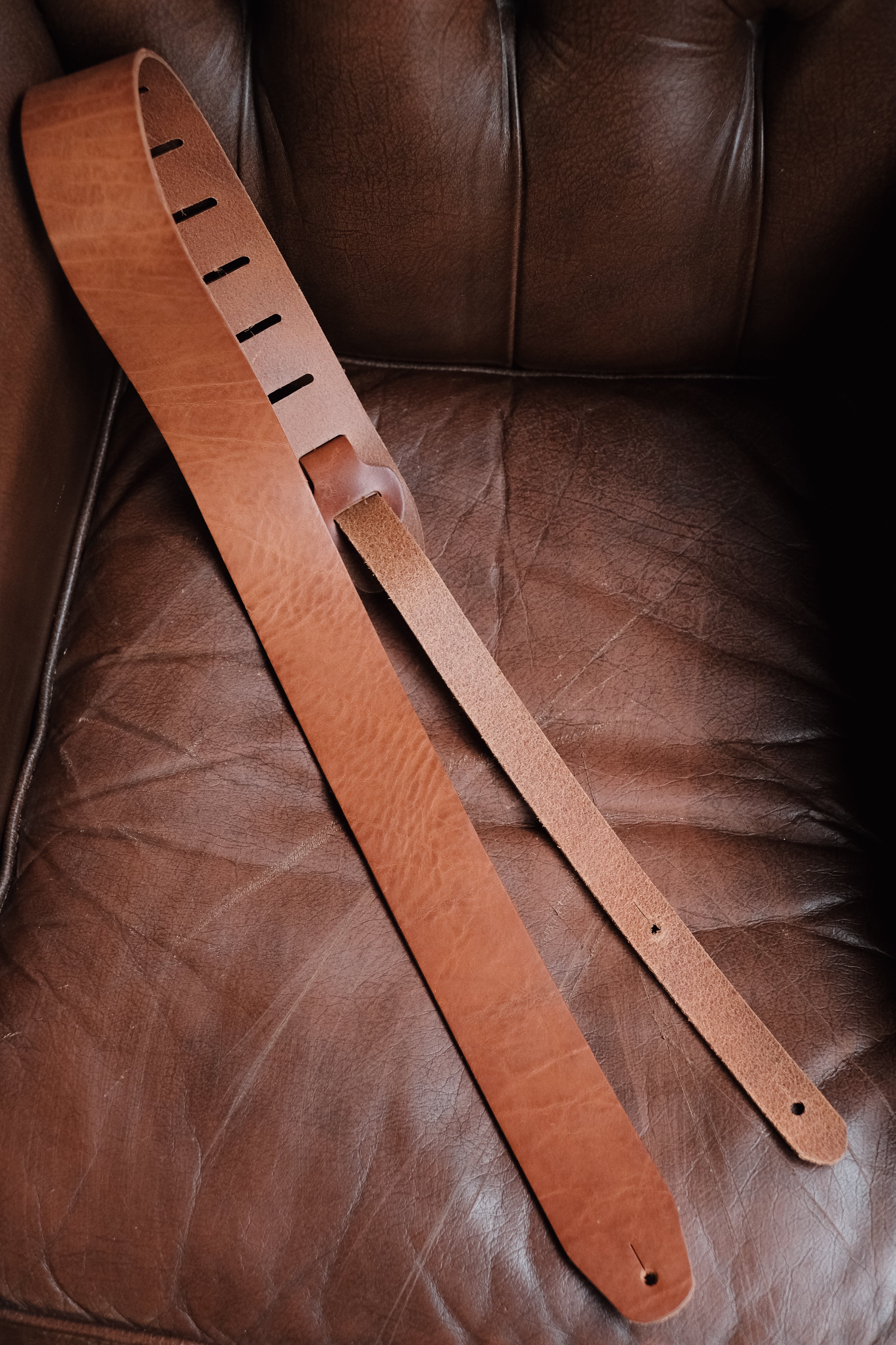 bought for the fussiest 60s Beat fan who loaths the modern guitar strap. This strap is perfect. Really high-quality leather beautifully and elegantly designed and made my partner smile. The strap will get many years of use. Thank you very much.