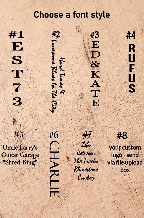 Add your custom text, choosing from multiple fonts. Or send us a custom image. You can even combine text and image if you wish.